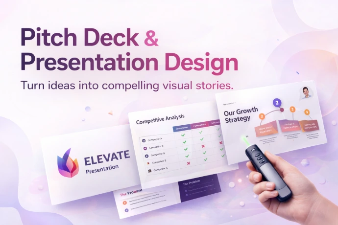 We design modern pitch decks and presentations that help startups and businesses communicate clearly and impress investors or clients.