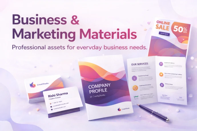 Brochures, posters, company profiles, business cards, and marketing collateral designed to elevate your brand presence.
